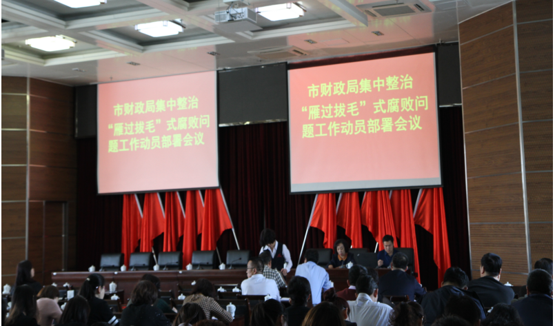 按照自治區、市委要求,市財政局結合工作實際,及時研究成立集中整治“雁過拔毛”式腐敗問題領導小組,制定相關工作方案。會議認真學習了劉奇凡書記《在全區集中整治“雁過拔毛”式腐敗問題工作動員部署會大會上的講話》。同時,傳達了市紀委辦公廳《關于持續開展“四風”問題明察暗訪工作的緊急通知》精神,并對推進兩項專項整治工作進行了安排部署,明確了目標任務、責任單位、工作步驟及工作要求。