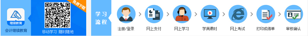 | 學員可直接通過互聯網點播課件學習,由系統自動記錄學習時間。學習滿24課時并網上考試合格后打印成績單,到會計 |