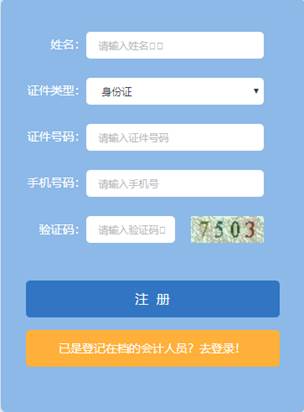 原有會(huì)計(jì)人員,輸入姓名+證件號(hào)碼+驗(yàn)證碼,登錄后補(bǔ)充信息。未進(jìn)行信息采集的人員,點(diǎn)擊【還不是登記在檔的會(huì)計(jì)人員?立即注冊(cè)!】,進(jìn)入注冊(cè)頁(yè)面,填寫(xiě)個(gè)人真實(shí)信息注冊(cè)。